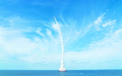 长征十一号海射运载火箭采取“一箭九星”方式发射“吉林一号”高分03-1组卫星。新华社发