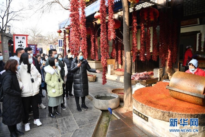 12月16日,游客在陕西省咸阳市礼泉县袁家村景区游览。新华社记者 张博文 摄