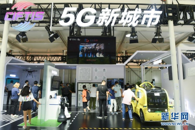 9月7日,观众在2020年中国国际服务贸易交易会5G通信服务专题展区参观。2020年中国国际服务贸易交易会9月4日至9日在北京举行。新华社记者 鲁鹏 摄