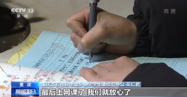 重庆市石柱县中益乡小学学生谭佳宏外公 花仁君:我们当外公外婆的说不来也教不来,他妈在外打工,后来开始上网课后,我们也就放心了。