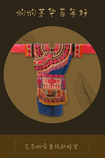 云南省美丽的山川、多样的民族文化,给予这里的人们无限的想象力和丰富的创作灵感,各民族把自己对历史过往的记忆、对大自然的热爱、对美好事物的感受、对社会道德的崇尚等等,用服饰文化这一特殊语言表现出来。其中,民族婚礼服饰种类繁多,文化底蕴深厚,每一套服装都反映出云南少数民族质朴的审美情趣与深厚的生活哲学。