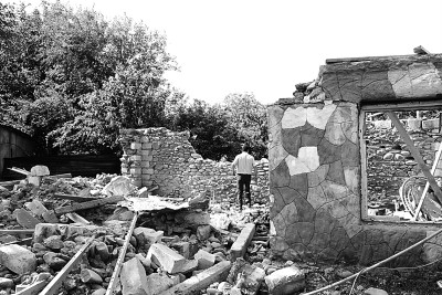 这是9月29日在阿塞拜疆临近纳卡边境的塔塔尔地区拍摄的在冲突中受损的房屋。新华社发