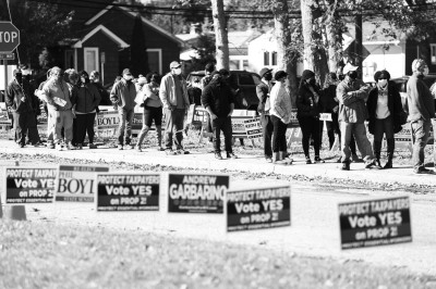 10月31日,在美国纽约州长岛的一个投票站外,参加提前投票的选民排起长队。新华社发