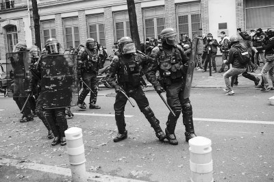 12月5日,警察在法国巴黎游行示威活动现场警戒。新华社发