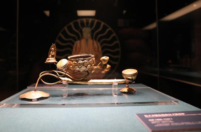 这是12月28日在航海文物展上拍摄的宋代鎏金莲花宝子银香炉。
