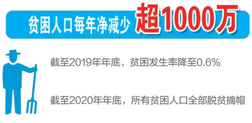 “十三五”期间,全国贫困人口每年净减少1000万以上,截至2020年年底,全国所有贫困人口全部实现脱贫摘帽。