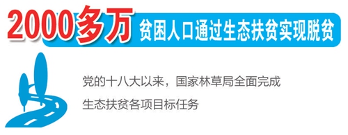 党的十八大以来,国家林草局大力推进生态补偿扶贫、国土绿化扶贫、生态产业扶贫。
