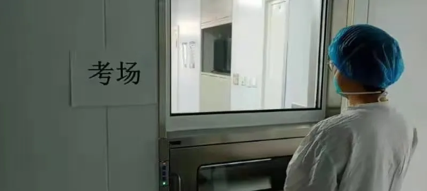 提起这场特殊的考试,一直靠前坐镇的孙艾军说,关键词是“紧张”。考生一开始很紧张,第一次参与这种形式的考试,医护人员和监考老师也很紧张,媒体、上级部门领导也都在随时关注,不停地给孙艾军打电话、发视频。“运卷、验卷、传送、答题……我一直在监控前。”