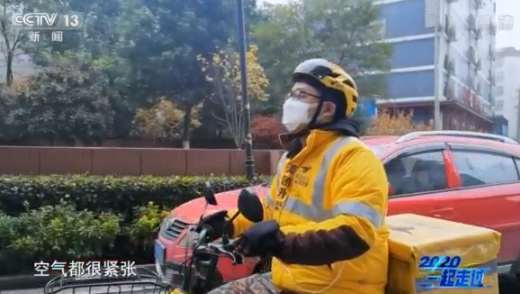 正月初一,老计鼓起勇气走上武汉街头,接的第一单就是送餐给中南医院。从那时起,70多天,老计一天都没有休息。