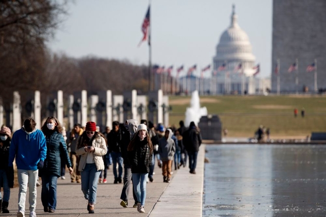 2020年12月27日,人们在美国华盛顿的国家广场漫步。(新华社发,沈霆摄)