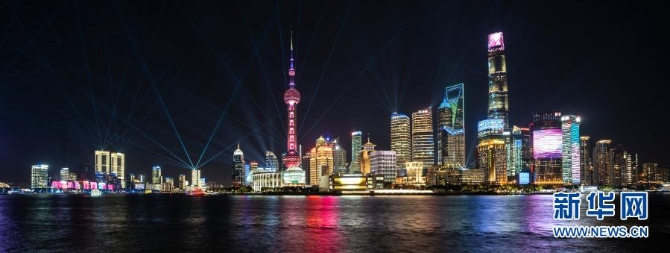 2020年11月4日拍摄的上海陆家嘴光影秀。新华社记者 张豪夫 摄