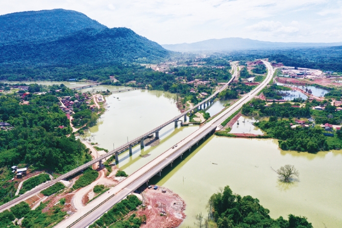 位于澜沧江—湄公河流域的中老铁路是中国“一带一路”倡议与老挝“变陆锁国为陆联国”战略对接项目。中老铁路全部采用中国技术标准和管理标准建设,设计时速160公里,为电气化客货混运铁路,计划2021年12月建成通车。图为在老挝万象省航拍的建设中的中老铁路(左)。 新华社发