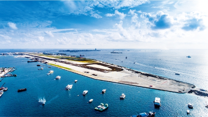 图为2018年9月14日拍摄的由中国企业承建的马尔代夫维拉纳国际机场新跑道。 新华社发 之图/摄
