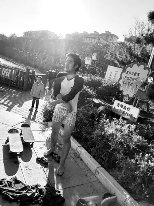 双柏县查姆湖是一座集防洪、灌溉、城市景观等多功能为一体的综合性水利工程,平时来这里休闲的市民很多。1月1日17时左右,24岁的起秋实正在查姆广场玩滑板。突然,一个玩滑板的小朋友边跑边喊他:“老起!老起!查姆湖有人落水了!”起秋实一听,赶紧跑到岸边,一看,从岸边到湖底有一个斜坡,水里有个男孩在挣扎,他立马脱掉衣物准备救人。