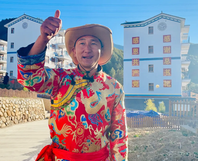 12月25日,“粤滇扶贫协作”联合主题采访团来到怒江傈僳族自治州兰坪县通甸镇通甸村易门箐易地扶贫搬迁安置点,曾经的建档立卡户熊玉全穿着喜庆的普米族服饰站在自家院子里迎接。他家拥有一栋两层的楼房,院子里打了水泥地皮,清爽干净。熊玉全给一行人介绍,在院子靠篱笆一边的角落里他还种了土豆、青菜供一家人吃,“我还种了一点重楼,这个可以做药材,今年市场前景好。”看得出来,熊玉全一家在精心经营着新生活。