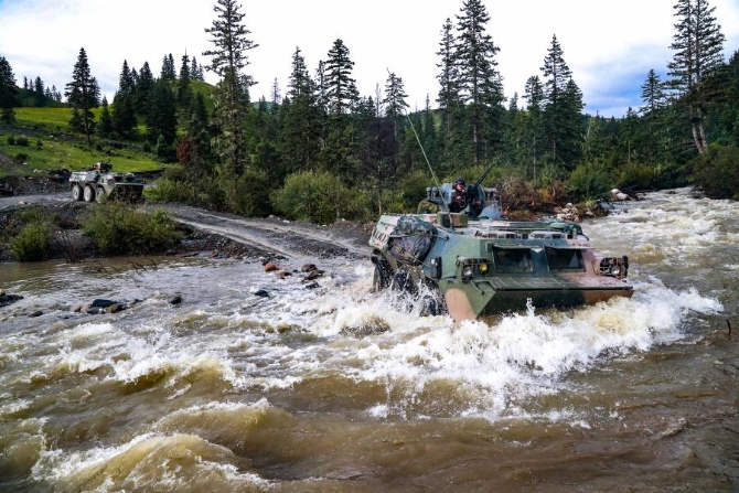 ■ 陆军第83集团军某旅红一连战车奔赴演习场(2019年8月7日摄)。新华社发(张增岩 摄)