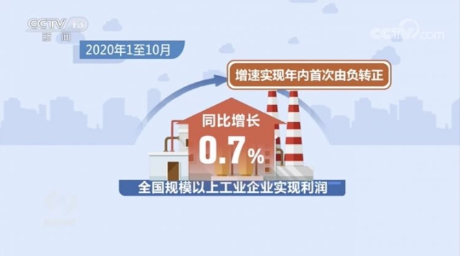 除了民间投资增速年内首次转正,另外还有三个经济指标也在显示2020中国经济复苏磅礴的动能。从企业利润看,到5月,全国规模以上工业企业利润增速实现由负转正,持续到11月,同比增长15.5%,保持了两位数较快增长。从财政收入看,到2020年第三季度,全国财政收入实现由负转正,同比增长4.7%。从居民可支配收入看,前三季度我国居民人均可支配收入达到了23781元,扣除价格等因素影响,实际增长0.6%。收入增长带来消费回暖,8月,社会消费品零售总额增速年内首次转正,从8月到11月,实现连续4个月的正增长。