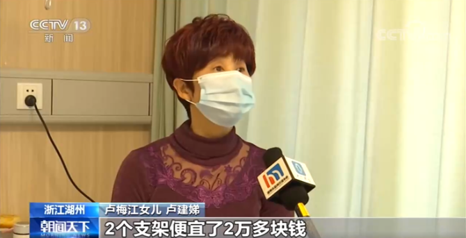 卢梅江女儿 卢建娣:这两个支架便宜了2万多块钱,后来又装了2个球囊,便宜了8000多块钱,我们算算看要(便宜)3万多块钱了。