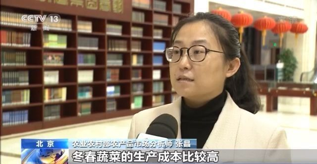 农业农村部农产品市场分析师 张晶:部分品种上市的时期有所推迟,另一方面是冬春蔬菜的生产成本比较高,既包括了生产的成本也包括了南菜北运扩大运输成本偏高,整体推高了菜价。