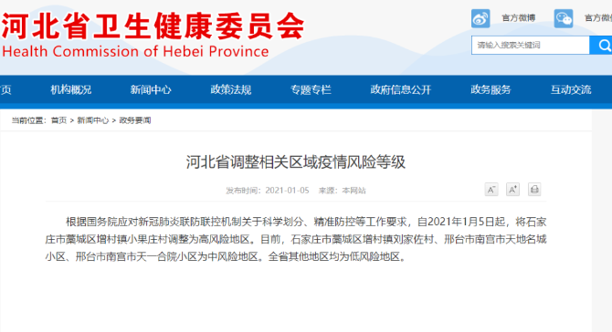 河北省卫健委1月5日通报,1月4日,石家庄新增本地确诊病例11例,新增本地无症状感染者30例。从确诊病例行动轨迹看,有3名确诊者曾参加婚礼。值得注意的是,河北出现了目前全国唯一的高风险地区——石家庄藁城区增村镇小果庄村。