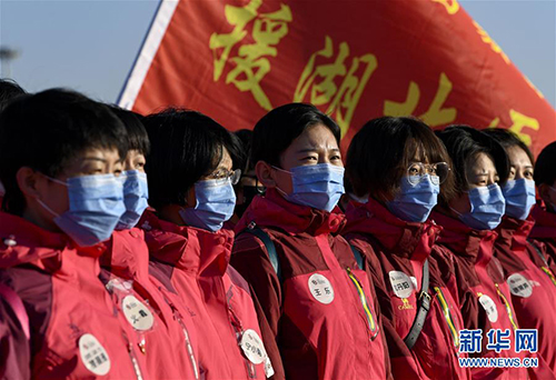 抗击新冠肺炎疫情中所显现出的万众一心、众志成城的气概,在报告文学中及时给予振奋人心的表达。2020年2月15日,宁夏第四批援助湖北医疗队从银川奔赴武汉。新华社记者 冯开华摄