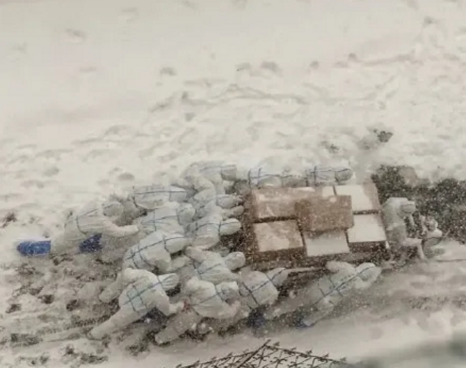 在漫天大雪中逆风前行