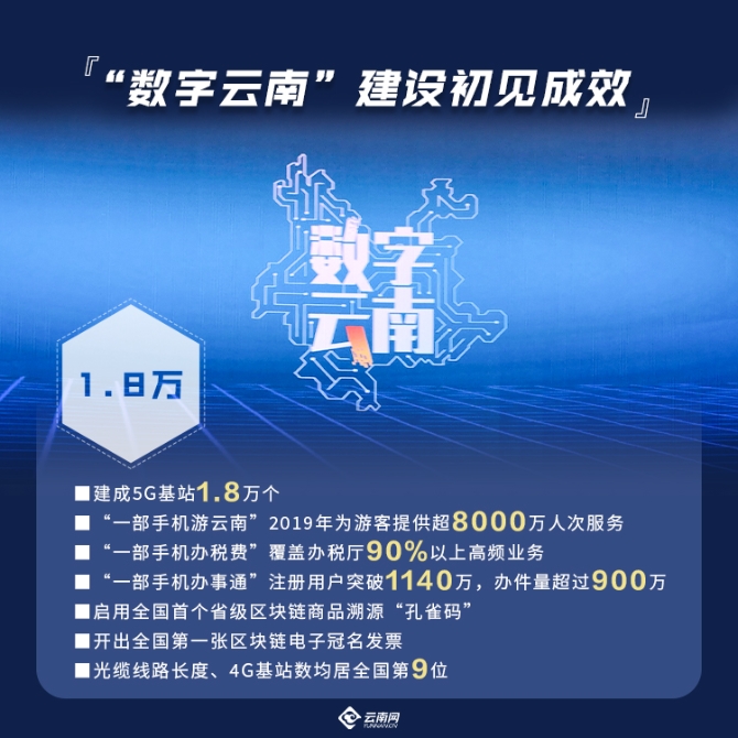 从“政务云”到农林大数据中心,从数字小镇到5G智慧生活……在贯彻落实党中央战略部署的坚实步伐中,云南省科学谋划、乘势而上,以开放的心态拥抱新技术,凝聚多方之力创新共享,探索出了一条以资源引企业、以市场换产业、以应用促发展的发展路子,将数字经济蓝图从梦想变为现实,云南数字经济建设提速明显。