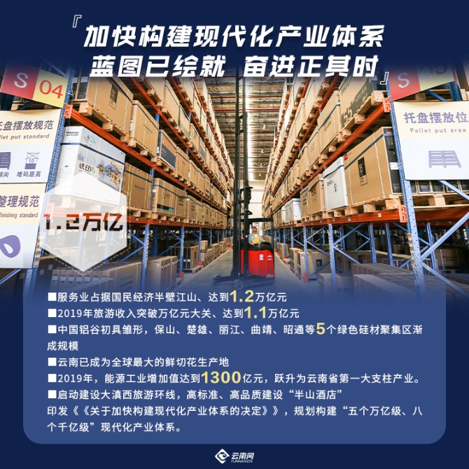 《建议》提出,“把云南建设成为强大国内市场与南亚东南亚国际市场之间的战略纽带”“促进与南亚东南亚国家产业链、供应链、价值链深度融合”等,这都需要强大的产业作为支撑。《建议》中也用专门篇幅对推动产业体系优化升级做出了部署。我省从“十三五”开始就深度谋划推进云南产业发展、构建现代产业体系,到现在已形成清晰的发展框架。“十四五”期间,我省将坚持以5个万亿级、8个千亿级产业为“四梁八柱”,以八大重点产业、世界一流“三张牌”、数字云南这三大板块为主要内容,努力构建特色鲜明、技术先进、绿色安全、动态迭代的现代产业体系,为云南高质量发展提供有力支撑。特别是在数字化发展方面,他认为,云南在过去的发展中与发达地区形成了差距,但在推动经济社会数字化转型方面,应该也完全有可能不再留下发展“鸿沟”,而有望实现“并跑”格局。