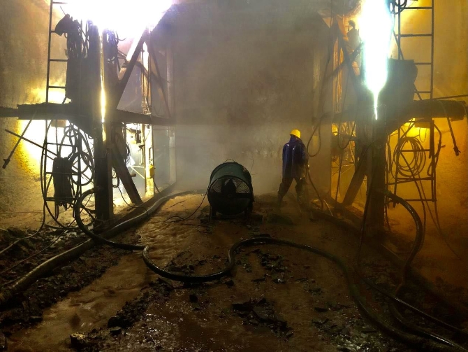“2#支洞沿线地质复杂多变,且断层带围岩破碎地下水发育,隧洞日均排水量达2000方,最大排水量3500方,给施工过程带来了极大的困难,可以说,在260天的施工期里,与水‘斗’成为了项目常态,治水也成为了2#施工支洞的特色。”谷玉春介绍,由于洞顶和掌子面经常喷涌出强大的水流浇得人睁不开眼睛,而在掌子面前,水深达到一米多深也是常有的事,即便身穿胶皮雨衣、头戴安全帽,洞内施工也依旧是件难事。为了治水,项目部采用”引、排、堵、截“的方式,洞内抽排水设备丰富多样,污水泵、潜水泵、离心泵等更是数不胜数。