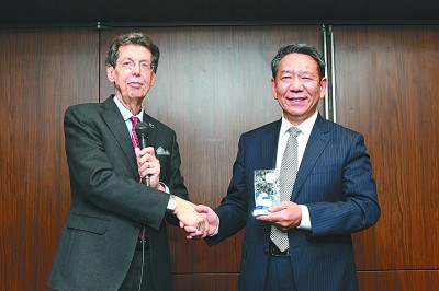 2019年12月5日,在东京开幕的第三届国际月球村研讨会上,中国嫦娥四号探月任务获得月球村协会颁发的优秀探月任务奖。图为月球村协会主席朱塞佩·雷巴尔迪向中国探月工程总设计师、中国工程院院士吴伟仁(右)颁奖。新华社发