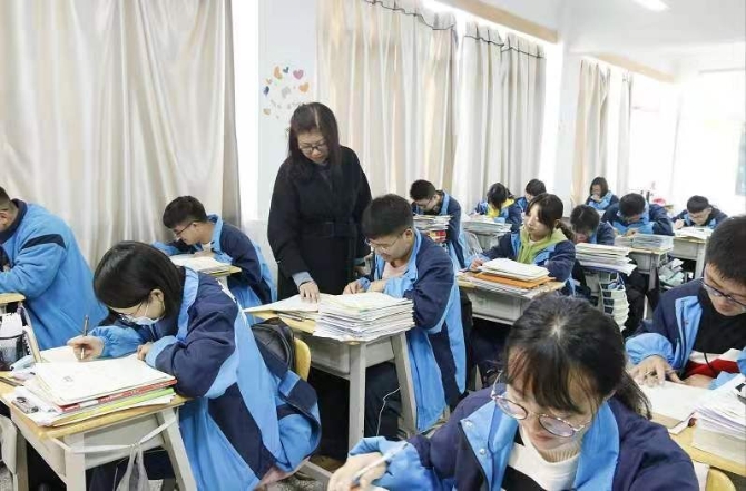 姚传虹老师检查晚自习