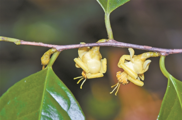 近日,河口瑶族自治县林草局、中科院昆明植物研究所研究人员在河口县境内调查极小种群野生植物时,发现一种黄色花的山茶属植物,经鉴定为柠檬金花茶,属云南新记录物种。柠檬金花茶之前仅在中国广西、越南北部有分布。据调查,柠檬金花茶在河口的分布区域狭窄,种群数量较少。(云南日报 记者王丹 通讯员 张贵良 蔡磊 摄)