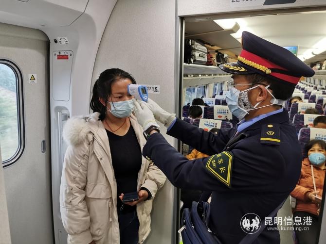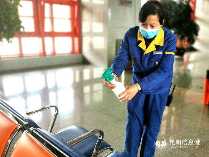 在昆明南站、昆明站、大理站等客流集中车站增加疾控、卫生驻守人员。每天安排人员对车站候车室、通道、站台、站房周边等区域进行2次以上喷雾消毒,并安排 700 名随车保洁员开展列车重点部位消毒。积极做好站区商铺等经营网点消毒、冷链食品消费证查验等工作。
