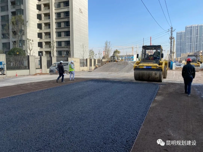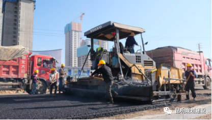 官渡40路,官渡主7路,官渡241路等3条道路的部分路段同步开始沥青摊铺。