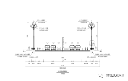 官渡4路南起于广福路,上跨现状海河及规划新飞虎河后,向北止于春城路,道路全长2914.90m,红线宽度30m,双向4车道;