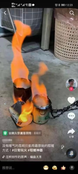 昆明信息港讯 记者劳学丽 通讯员胡耀元 杨宵圆 日前,云南省昆明市消防救援支队抖音账号后台接到多名网友举报,昆明某高校学生在宿舍使用明火取暖。消防员随即“顺着网线”找到该名学生,并开展现场消防安全教育。