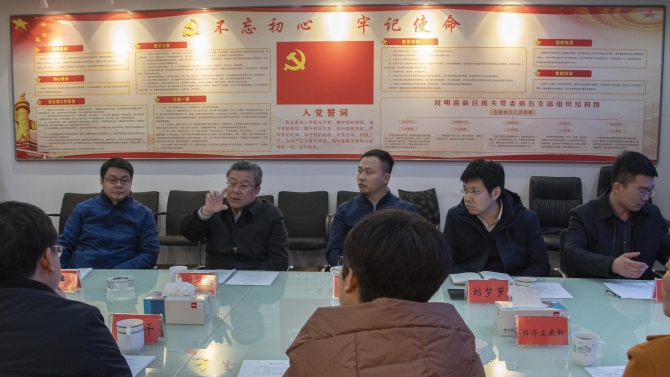 首先,张学平代表高新区党工委、管委会向烟台高新区工作委员会一行到昆明高新区参观表示欢迎。张学平率高新区党群工作部、经济发展部、商业和促进部、规划建设局、孵化器管理中心及国资公司有关负责人与烟台高新区管委会进行座谈。并就昆明高新区近年来的发展以及高新区的三大产业特点进行了详细介绍。同时,对高新区生物医药大健康产业以及贵重金属新材料产业进行了重点介绍。针对高新区东区产业以及未来发展情况向烟台高新区工委书记、管委主任刘森及相关工作人员进行了沟通交流。