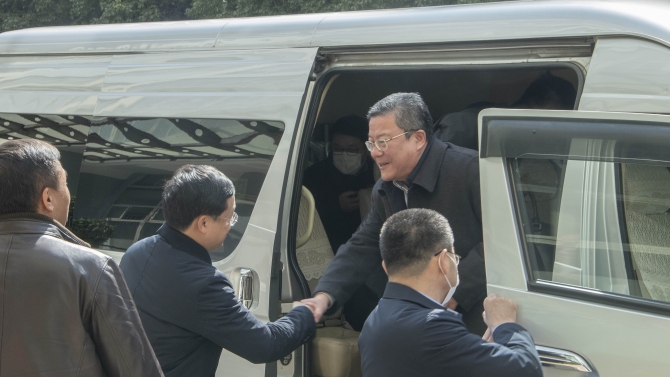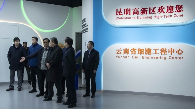 烟台高新区工委书记、管委主任刘森到达昆明高新区准备参观云南省细胞工程中心。实习生张杨/摄