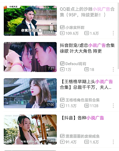 除了图文并存的小说广告,同样以获取流量为目的的,还有以土味短视频呈现的小说广告。这类广告通常不足1分钟,拍摄内容选取“爽文”中最“爽”的段落,包含霸道总裁、后宫争宠、穿越、恐怖惊悚等吸睛元素,剧情夸张、爽点及打脸桥段高度密集。曾参与这类小说广告拍摄的管云鹏告诉记者,去年5月至7月,他可能就拍了上百条此类信息流广告,“虽然具体角色、台词会稍有变化,但都包含前期隐忍、中期制造矛盾冲突点、后期逆袭的套路,内容其实换汤不换药。”