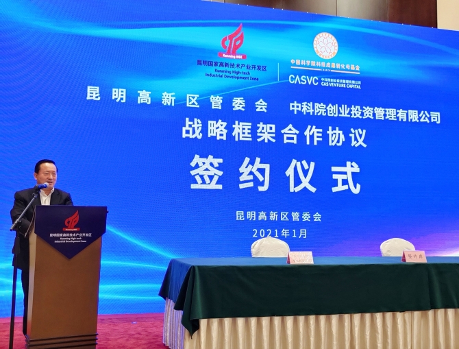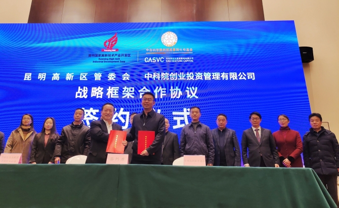 昆明信息港讯 记者张薇 1月15日,在昆明国家高新技术产业开发区(东区),昆明高新区管委会与中科院创业投资管理有限公司共同签订《战略合作框架协议》,双方将共同设立中科院生物技术产业投资基金,以生物技术产业型投资为主,兼顾科学院成果转化项目。