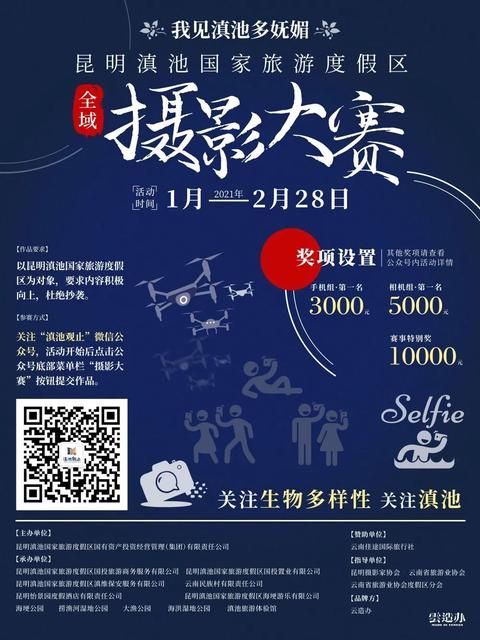 本次大赛以“关注生物多样性,关注滇池”为主题,旨在为即将在昆明举办的联合国生物多样性大会(COP15)收集和提供滇池周边环境样本实景。要求参赛作品以反映滇池生态建设、自然风光、人文风情、历史变迁和经济社会发展成就为题材,充分展示滇池经济社会发展、生态文明建设的成果和高原湖滨度假休闲胜地的风采。
