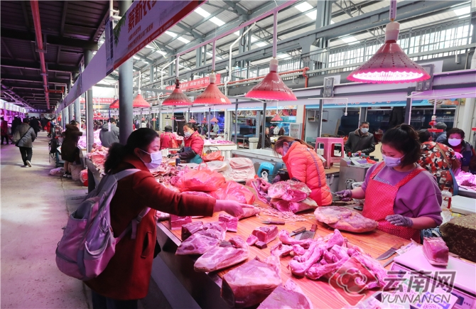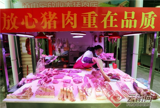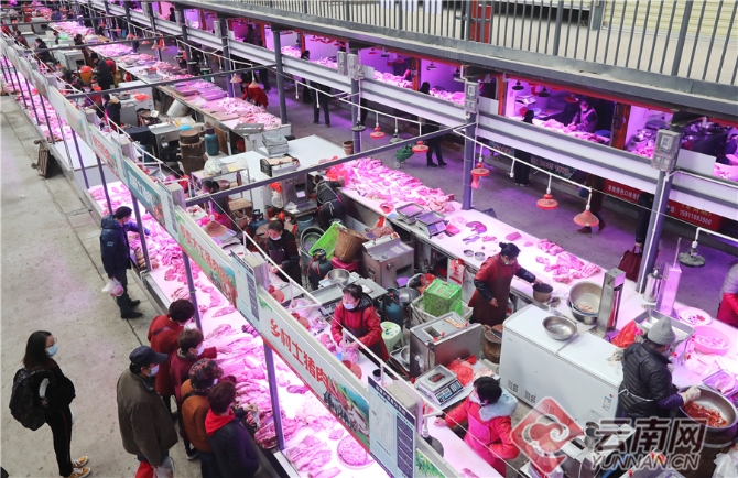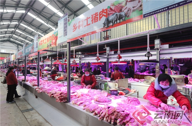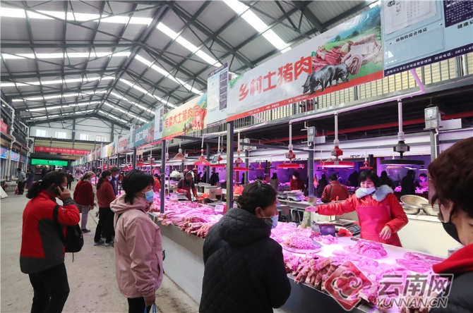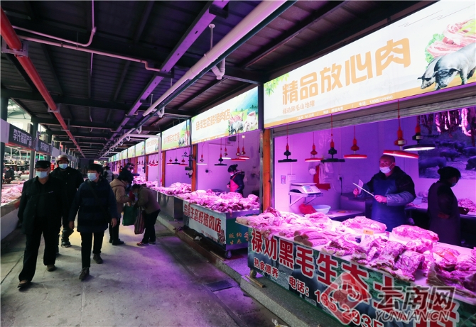 在昆明篆新农贸市场,经过提升改造的猪肉大棚卖场面貌一新,不仅通道宽敞干净,商铺摊位规范,购物环境得到全面提升,而且地下排污管网系统、电力系统等也得到了更新完善,为市民提供了一个安全卫生、干净整洁、规范有序的市场。
