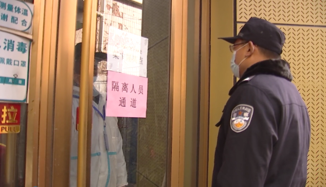 就在我们采访的过程中,张良的电话响了,有一批物资要马上送到集中隔离点。隔着隔离点的玻璃门,张良一遍一遍的叮嘱执勤的民警,一定要做好防护。
