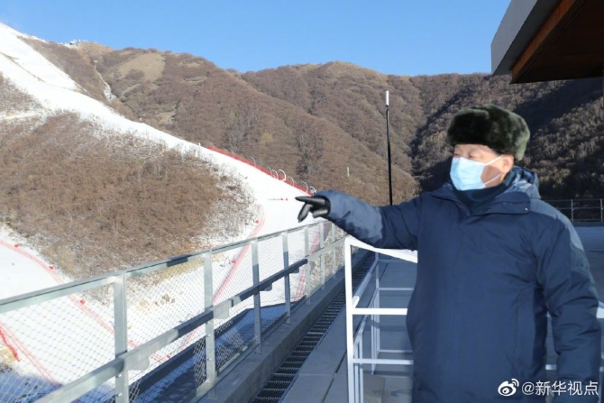 18日下午,习近平总书记来到位于北京市延庆区的国家高山滑雪中心考察调研。在竞技结束区,习近平观看了高山滑雪赛场保障运行和竞技比赛训练情况。习近平指出,体育强国的基础在群众体育。要通过举办北京冬奥会、冬残奥会,把我国冰雪运动特别是雪上运动搞上去,在3亿人中更好推广冰雪运动,推动建设体育强国。临别时,大家齐声高呼:“中国冰雪,加油!”习近平也鼓励大家说:“加油!”