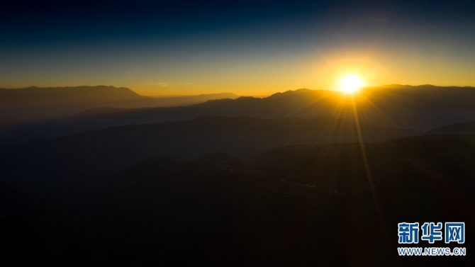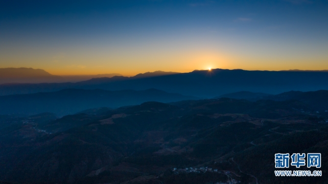 航拍昆明东川 绚丽日出映照红土地