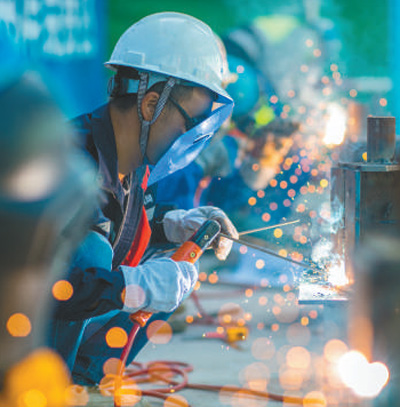 内蒙古呼和浩特建筑行业技能大赛,选手在进行电焊。丁根厚摄(影像中国)