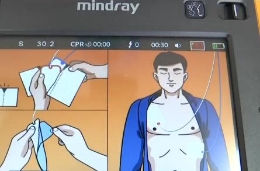 AED自带电池,打开后就会有语音提示和图示,抢救者按照语音提示进行操作即可: