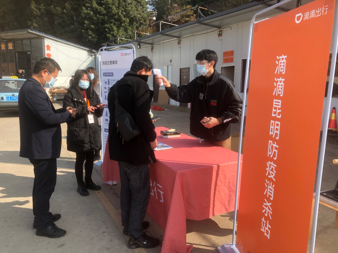 滴滴出行昆明相关负责人表示:“滴滴线下防疫服务站启用后,工作人员开始有序为坚守在一线服务的司机师傅们免费发放口罩、消毒液等防疫物资,帮助司机为车辆消毒,给司机测量体温,并将统一制作云南防疫健康码提供给司机用于车内张贴,用于引导乘客扫码乘车,切实落实运营中的网约车防疫安全。