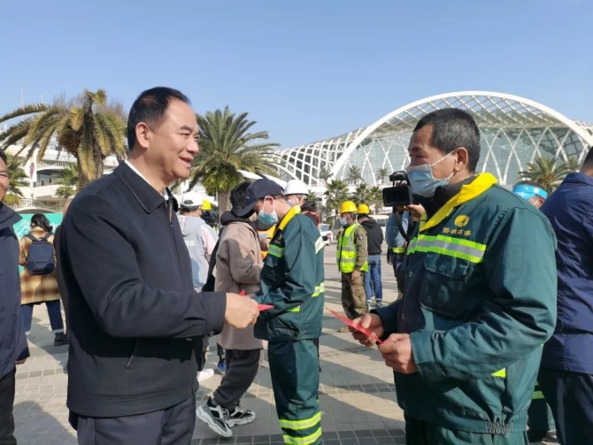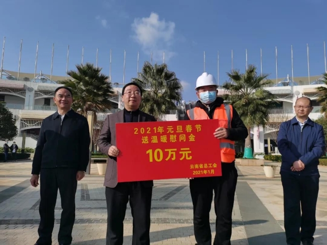 启动仪式结束后,孔贵华一行慰问了COP15的参建职工代表。慰问中,孔贵华表示,全省上下正在深入贯彻落实习近平总书记的重要指示精神,努力推动筹办迎接《生物多样性公约》第十五次缔约方大会的相关工作。这次大会在昆明召开,是全省承担的一项光荣的历史使命,是习近平总书记、党中央、国务院交给我们的任务。孔贵华要求,工会组织要发挥好群团优势,一是深入开展宣传动员活动,要围绕各自的职责和联系服务的对象,加大对大会相关知识的宣传,动员职工群众广泛参与、支持大会的筹办工作。二是深入开展立功竞赛活动,发挥工会作为党联系职工群众的桥梁纽带作用,广泛开展劳动竞赛、技能竞赛等各项活动,推动、促进工程的建设与大会的筹备工作持续开展。深入开展先进选树活动。对各种竞赛涌现出来的先进模范和优秀代表,授予省五一劳动奖章和工人先锋号。四是深入开展关心关爱活动。随后,孔贵华等人向职工代表发放慰问金。