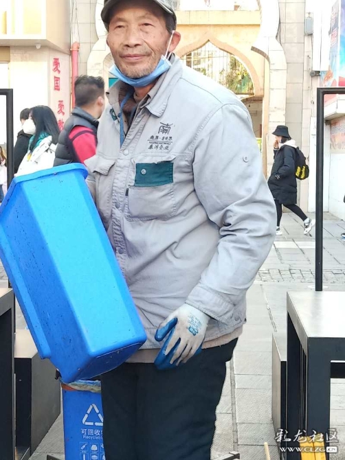 笔者看到南屏街的保洁员朱大爷勤勤恳恳地拾捡和分类垃圾桶里的垃圾,他的小推车里已经堆了以塑料制品垃圾为主的一小堆垃圾,与他进行了一次关于垃圾分类的简单对话。